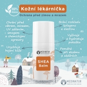Africký zázrak - SheaBalm je olej z másla karité, který obsahuje účinné látky jako jsou vitamíny A a E, nenasycené mastné kyseliny, fytosteroly, karotenoidy, levandulová silice a soli kyseliny skořicové. Díky nim urychluje hojení poškozené nebo podrážděné kůže, vyživuje suchou pleť a pomáhá ji ochránit před ekzémy. Podporuje a hydratuje pokožku a chrání ji před vnějšími vlivy – mrazem, UV zářením, smogem a dalšími.