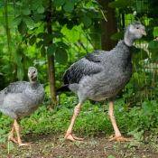 Foto 3: Typickým znakem čáj jsou rohovinou pokryté ostruhy na ohbí křídel, kterými se brání před predátory. Vyznačují se také pronikavým hlasem, kvůli kterému čáji ochočují jihoameričtí domorodci a využívají je podobně jako hlídací psy či alarm. Na snímku jedno z letošních mláďat. Foto Petr Hamerník, Zoo Praha