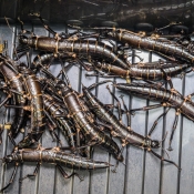 Foto 3: Dospělé strašilky humří v Zoo Praha se stejně jako v přírodě přes den sdružují do skupin v úkrytu. Pravděpodobně to těmto hmyzím gigantům dodává pocit bezpečí. Aktivní bývají v nočních hodinách. Foto Petr Hamerník, Zoo Praha